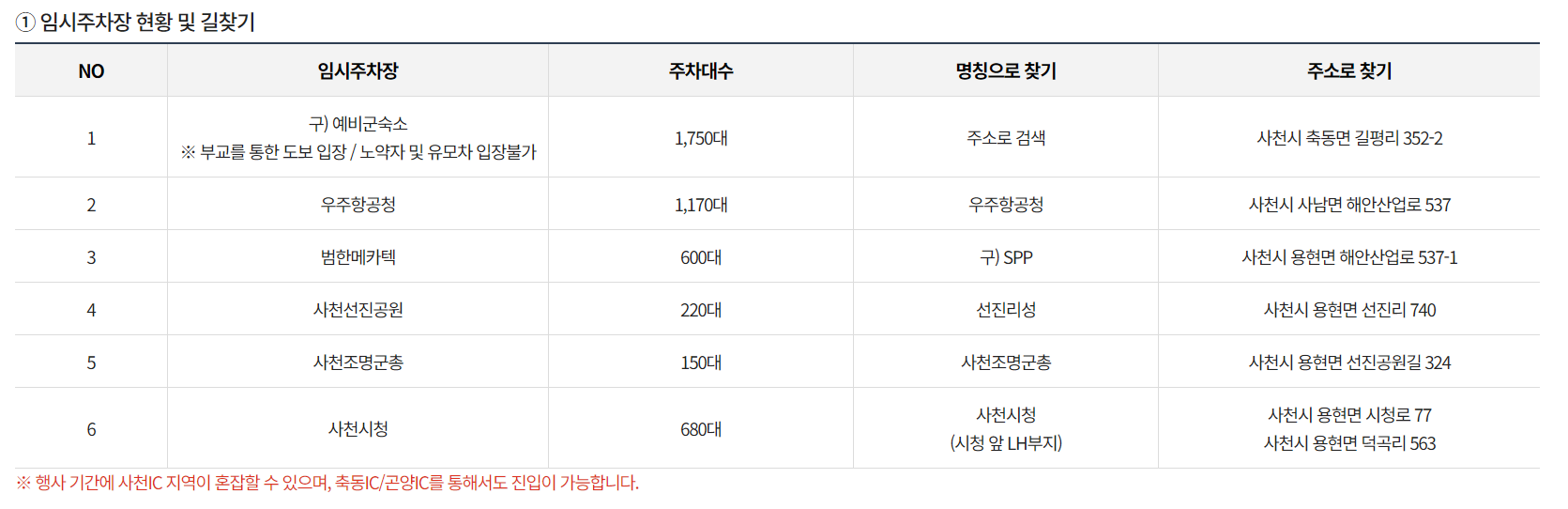 임시 주차장 안내